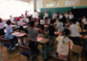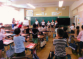 南部地区の小中学校の先生方を招いて、外国語科の授業研究会を行いました。たくさんの先生方(オンライン参加の先生もいます)が見守る中、子どもたちは普段通り元気よく楽しそうに学んでいました。
