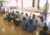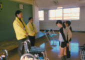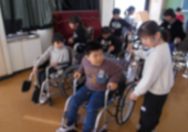 4年生が車いす・アイマスク体験を行いました。子どもたちは、実際に触れてみたり体験することで理解を深めていました。